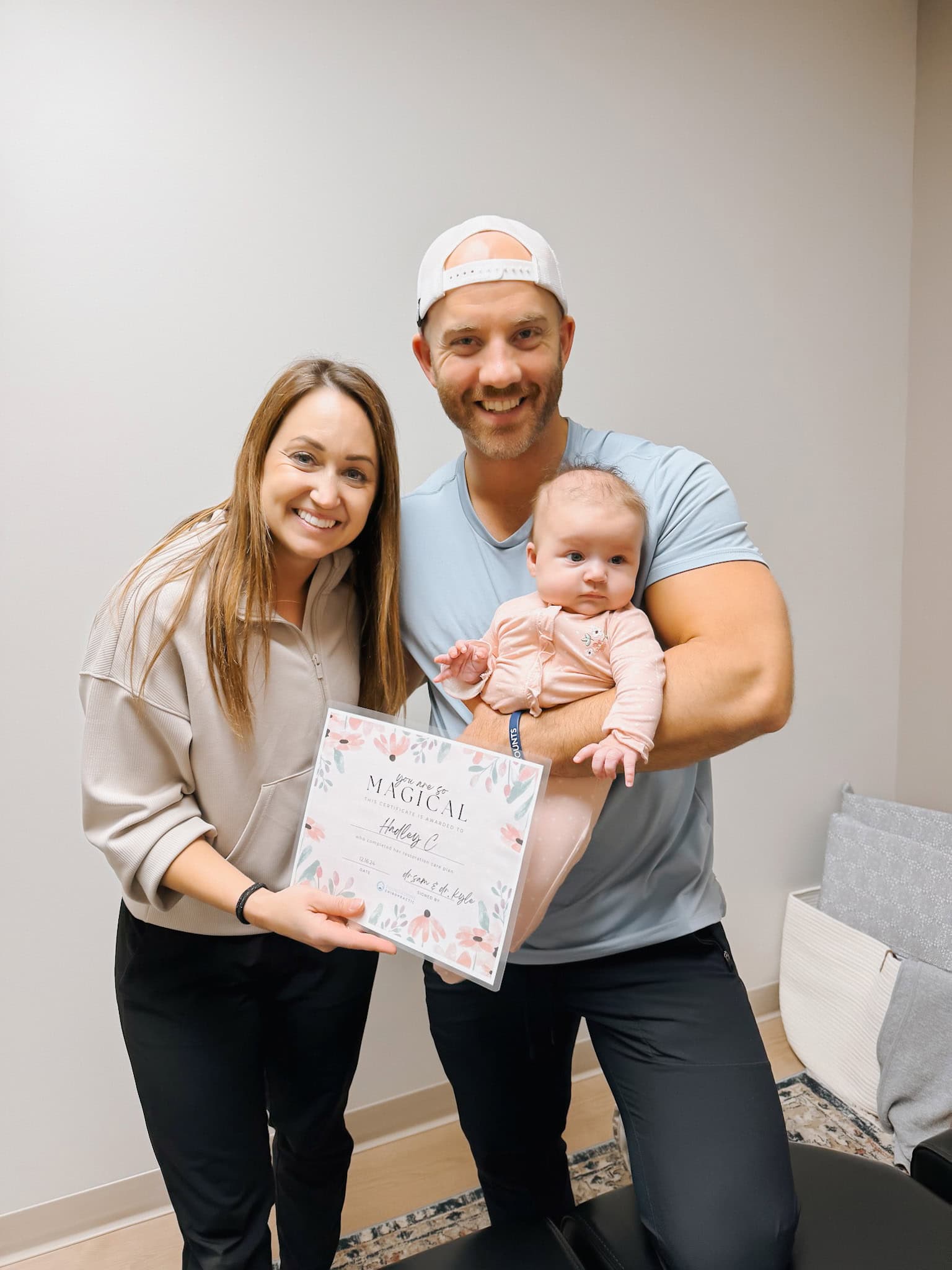 This was exactly Hadley’s story. After an extra “hands-on” delivery, Hadley was favoring looking to one side and experiencing some tension in her neck and upper back. Thankfully, her smart mama, who had been under chiropractic care throughout her pregnancy, knew the benefits of starting Hadley on a care plan right away.